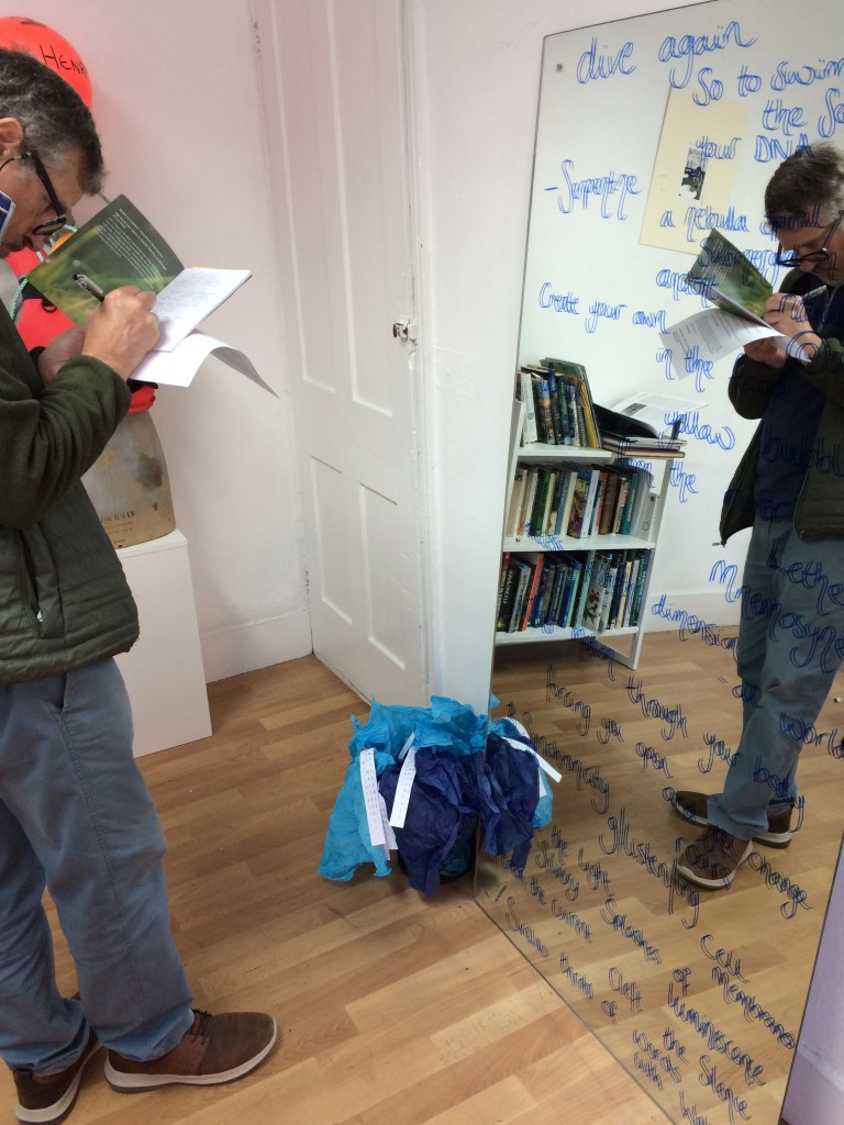 Wednesday’s Writing with Water: Embodying Writing workshop at Gallery North, Hailsham, for Waterweek was a huge success! The Vital Water exhibition provided us all with a wide variety of sensory stimulus material and gave us space to explore and expand, as we were a large group in a small building!