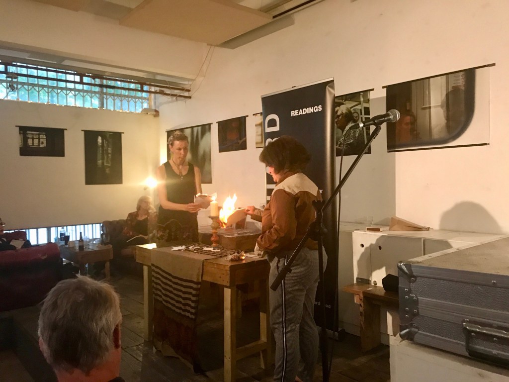 Dolly & I have been working together to create ritual poetry for a couple of years now. We collaborated on Freedom of Movement in March 2018, created a sequence of poems for the Original + Dub anthology (Hesterglock Press, May 2019), performed our poems at the anthology launch in June, and were saying we’d like to grow that work to the next level when the Hi Zero invite arrived. This was a thirty minute slot for us to fill as we wished.